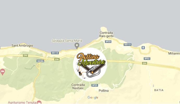 Clicca qui per seguire le indicazioni corrette col navigatore di Google dalla SS113 fino al cancello del Parco Avventura. Il parcheggio si trova 300m più avanti.